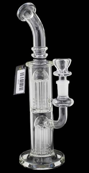 Double Chamber Dual Tree Perk Water Pipe. 14mm Bowl Included. 10″. 1ct.