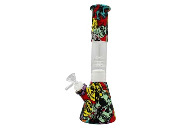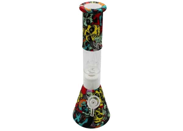 Graphic Design Glass Perk Silicone Hybrid Beaker Water Pipe. Colors May Vary. 10″. 1ct.