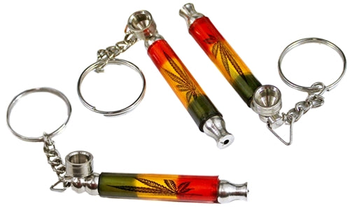 Rasta Leaf Key Chain Metal Pipe. 3″. 10ct.