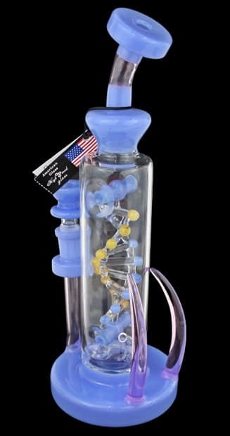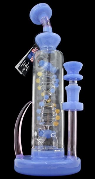 Spinning DNA Helix Perk Dual Horns Water Pipe. 14mm Bowl Included. 11″. 1ct.
