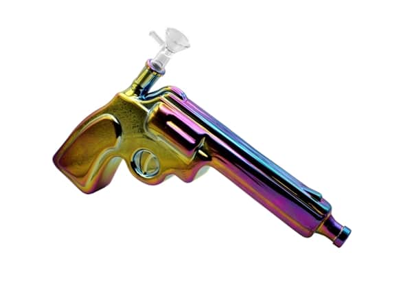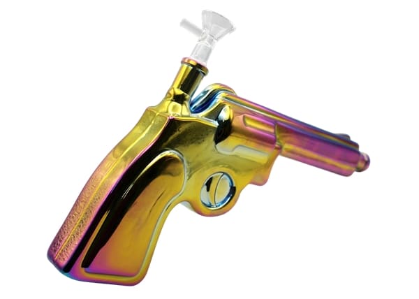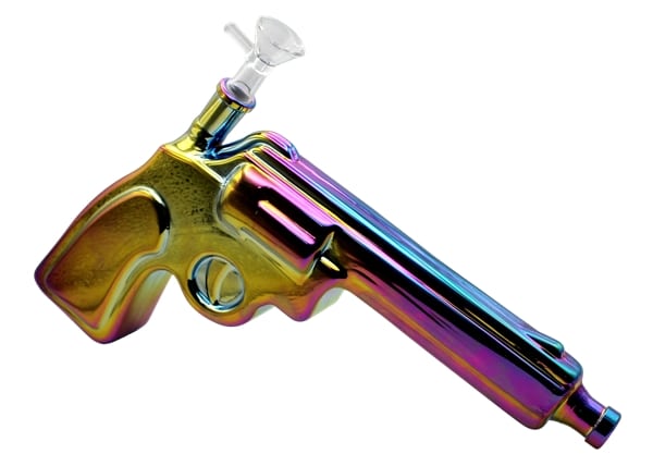 Glass on Glass Pistol Gun Water Pipe. Slider Bowl Included. Colors May Vary. 12″. 1ct.