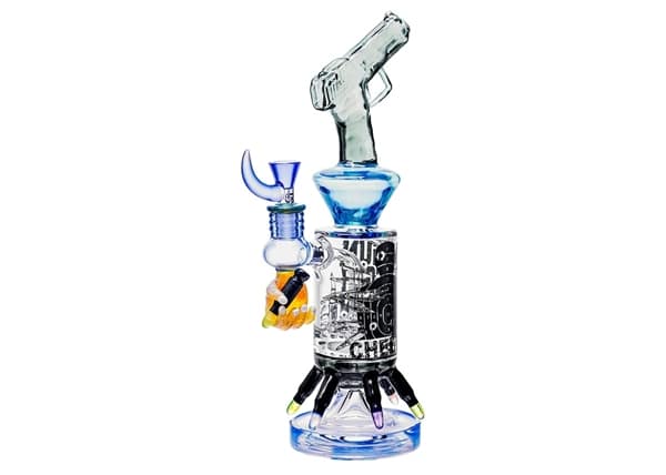 Cheech Pistol Themed Smoking Pipe Design Water Pipe. 14mm Bowl Included. Colors May Vary. 13″. 1ct.