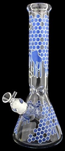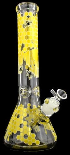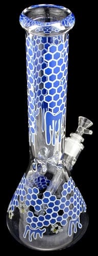 Glass On Glass Honeycomb Bee Art Beaker Water Pipe. Bowl And Stem Included. 13″. 1ct.