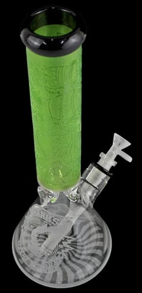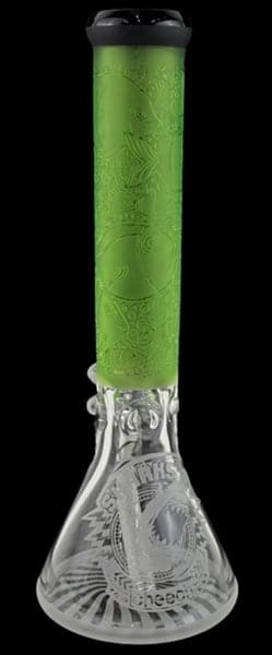 14″ Cheech Glass Sharks Attack Frosted Etched Beaker Water Pipe