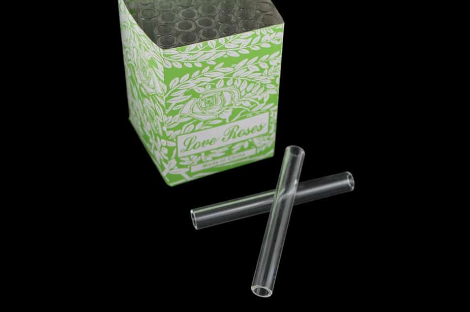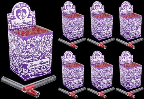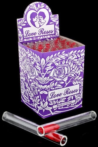 Glass Tube Love Roses 36pc Open End – Thick. 4″. 12mm.  24 Packs In A Case with 36 Tubes Per Pack.