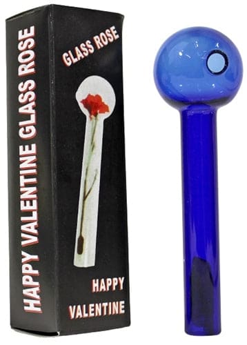 Happy Valentine Glass Rose – Blue. 4″. 24ct.