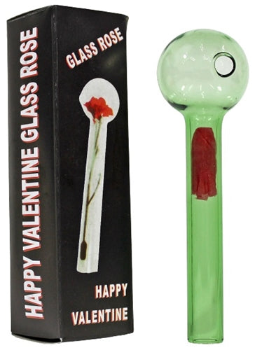Happy Valentine Glass Rose – Green. 4″. 24ct.