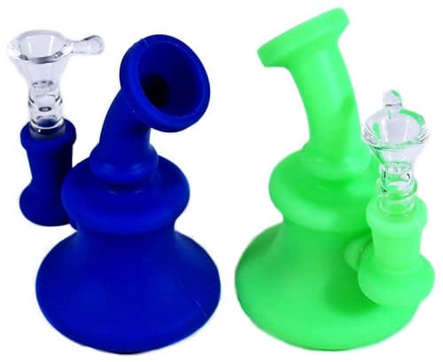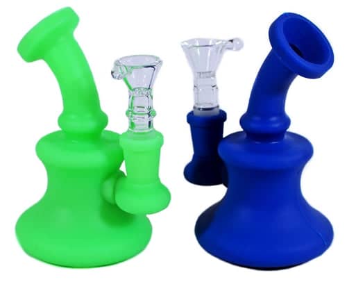 Silicone Hanger Banger Water Pipe With Glass Bowl. 14mm Bowl Included. Colors May Vary. 5″. 2ct.
