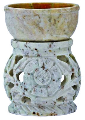 Floral Carved Soapstone Aroma Lamp SBR210. 3.5″. 1ct.