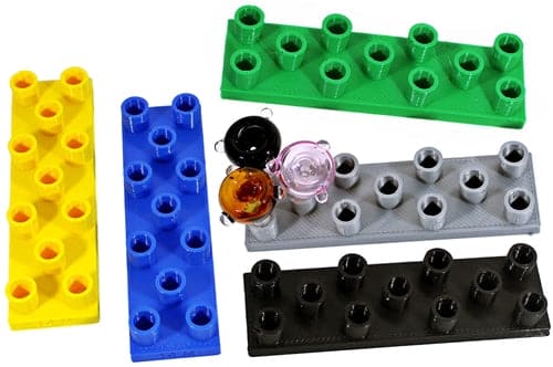 3D Printed Bowl Display. Holds 11 Bowls. Fits 14mm Male Joints. Colors May Vary. 8″ x 2.25″. 1ct.