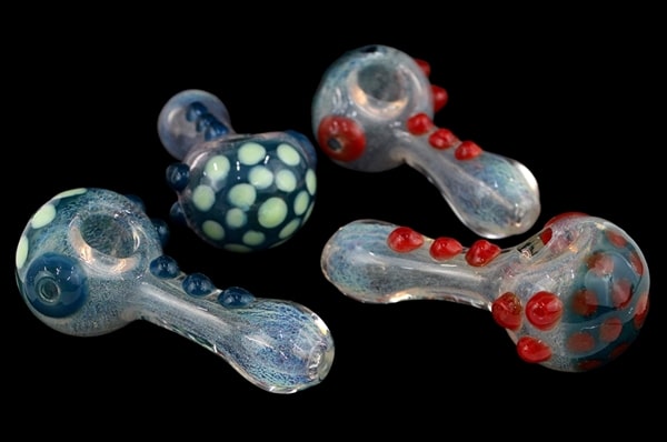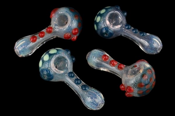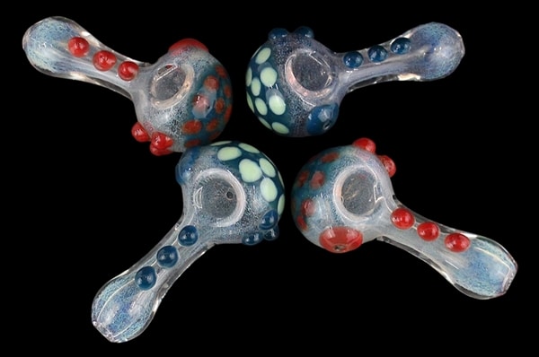 Marble Dots Frit Spoon Hand Pipe. 4″. 4ct.