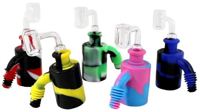 Silicone Ash Catcher with Quartz Flat Top Banger. Colors May Vary. 3″. 1ct.