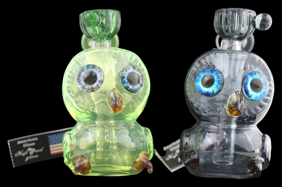 Owl Water Pipe. 14mm Bowl Included. Colors May Vary. 5″. 1ct.