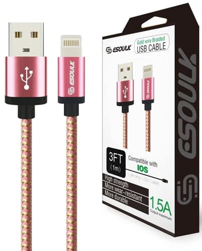 Esoulk 10FT USB Charging Data Sync Cable – IOS Lightning Cable. Colors May Vary. 5ct.
