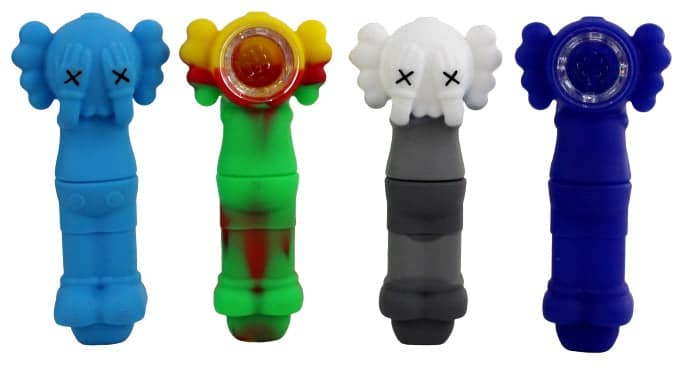 Kawz Silicone Hand Pipe with Glass Bowl. Colors May Vary. 4.5″. 5ct.