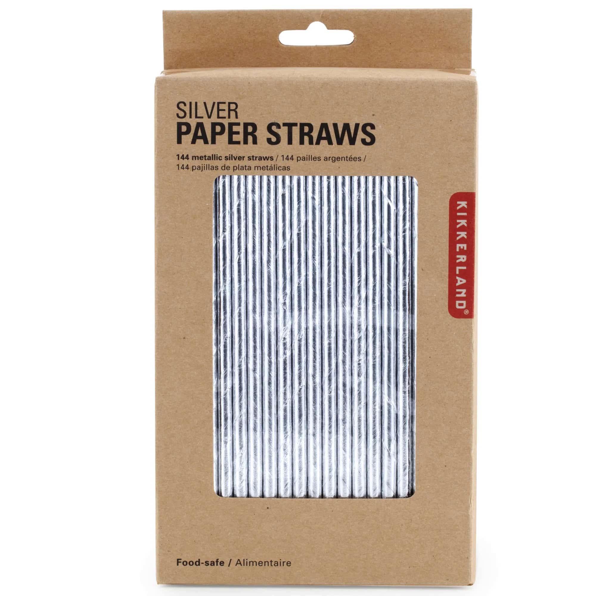 Kikkerland Paper Straws in Silver. 144 Straws in a Box. 5ct.