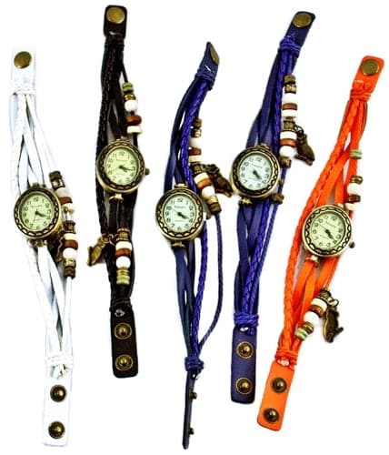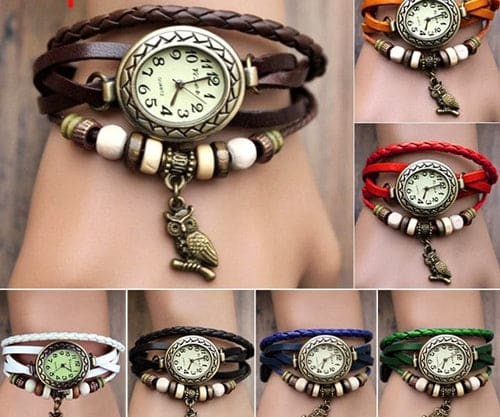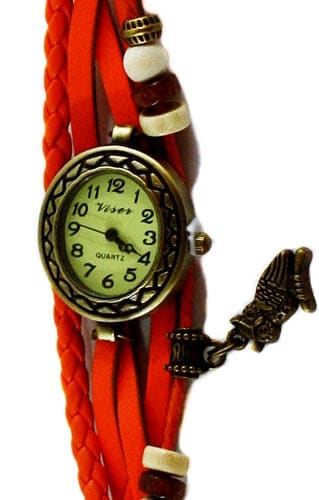 Leather Wrist Watch Charm Bracelet With Owl Pendant. Colors May Vary. 5ct.