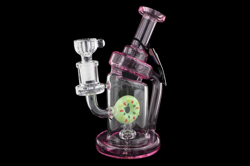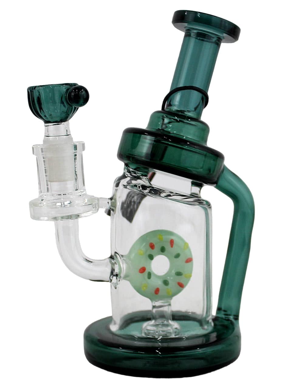 Donut Perk Curve Recycler Water Pipe. 14mm Bowl Included. 7″. 1ct.