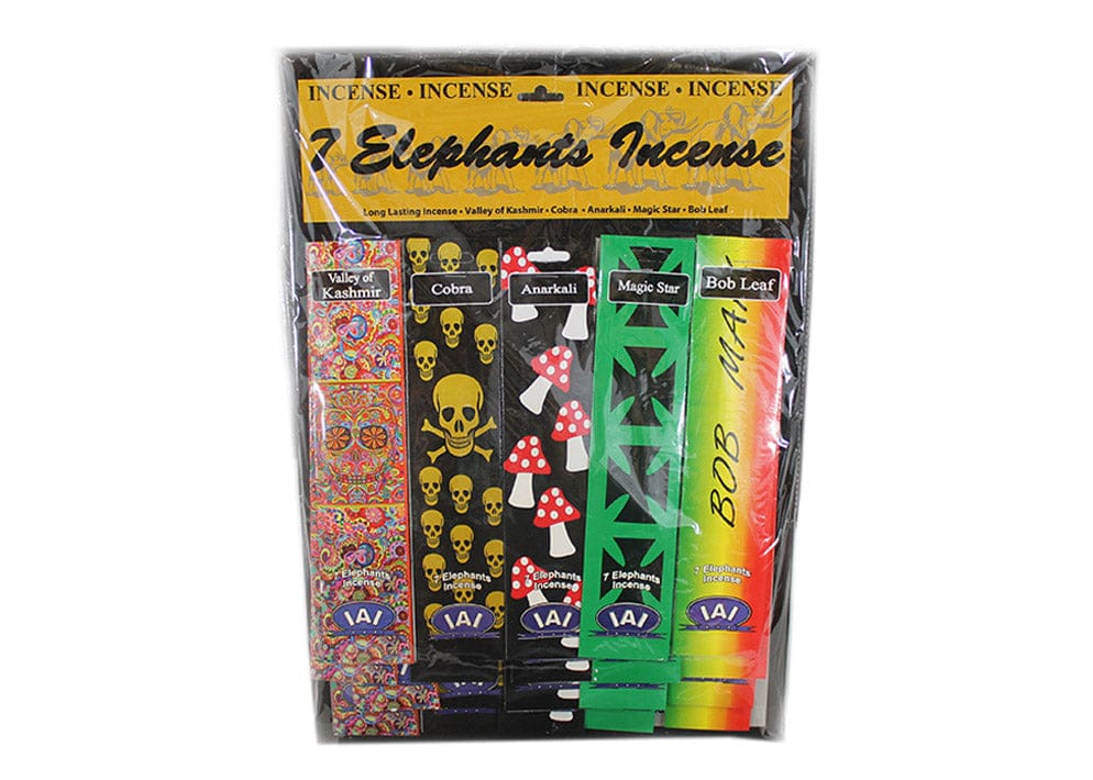 7 Elephant Incense Includes 4 Packs Of 5 Different Long Lasting Incense. Valley Of Kashmir, Cobra, Anarkali, Magic Star And Bob Leaf.