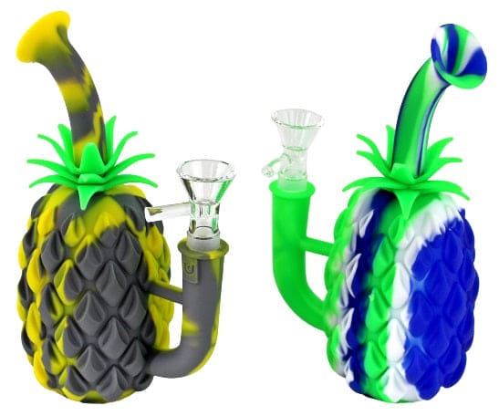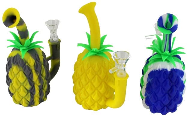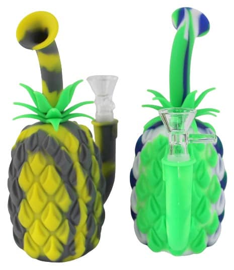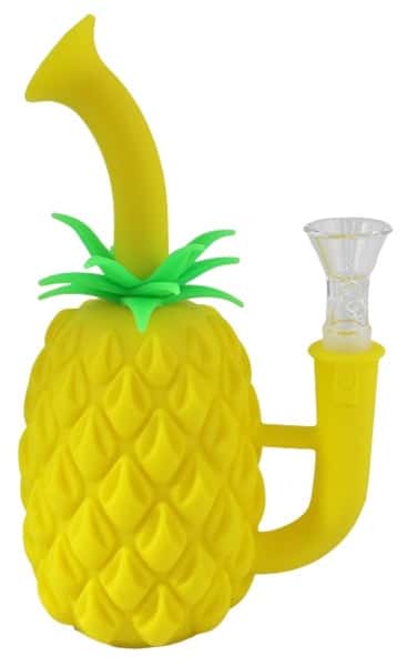 Pineapple Silicone Water Pipe. 14mm Bowl Included. Colors May Vary. 7″. 1ct.