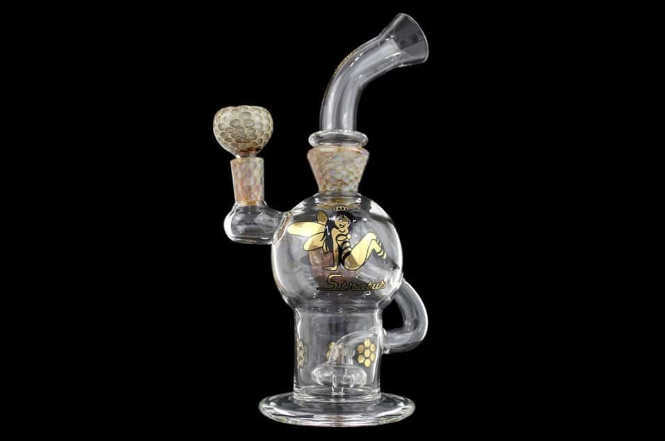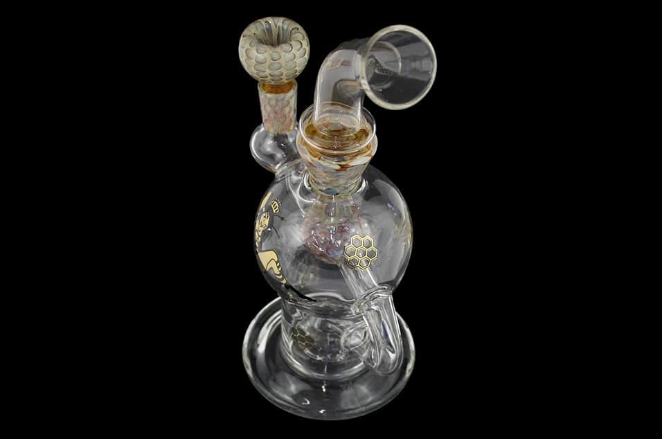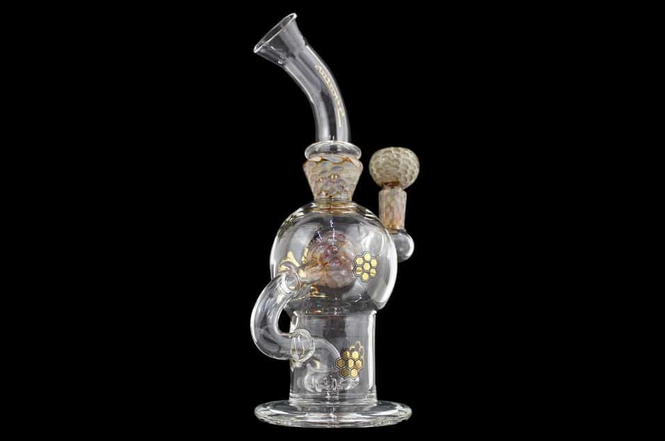 Stratus Glass Honeycomb Heart Recycler Water Pipe. 14mm Bowl Included. 8″. 1ct.