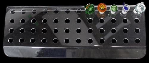 Acrylic Tilted Bowl Display – Holds 48pcs – 19mm. Clear. Bowls Not Included. 20″ x 7.5″ x 3.5″. 1ct.