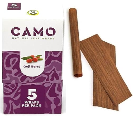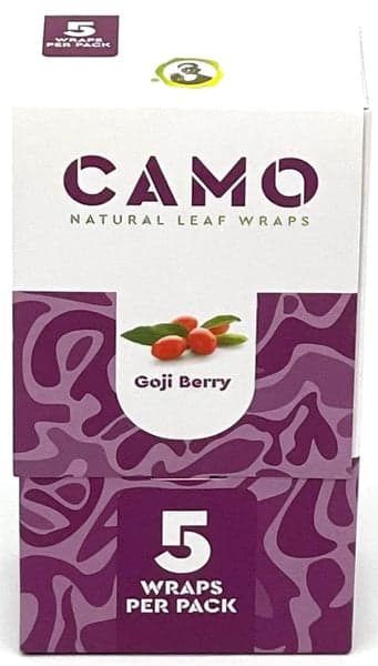 Afghan Hemp Camo Self-Rolling Natural Leaf Wraps – Goji Berry. 25 Packs in a box display with 5 wraps per pack. 1ct.