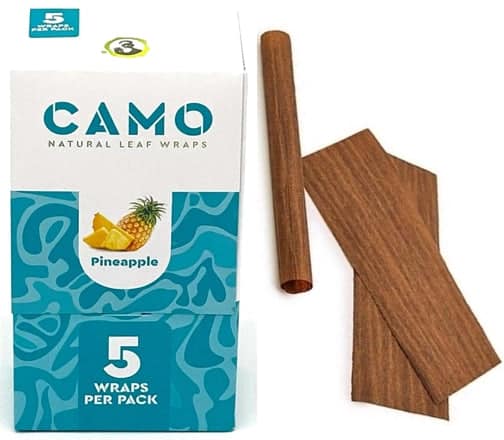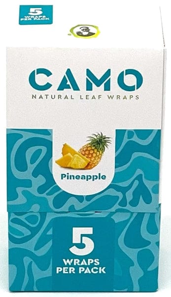 Afghan Hemp Camo Self-Rolling Natural Leaf Wraps – Pineapple. 25 Packs in a box display with 5 wraps per pack. 1ct.