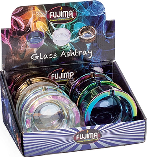 Anodized Finish Glass Round Ashtray. 3.5″. 6 Ashtrays In A Box Display.