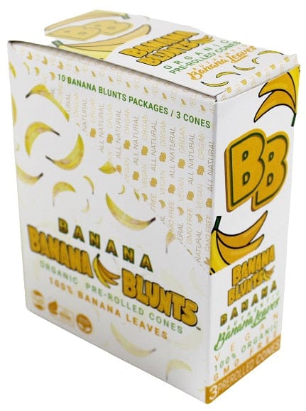 Banana Blunts Organic Pre-Rolled Cones – Banana. 10 Packs in a Box Display with 3 Cones Per Pack.