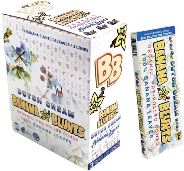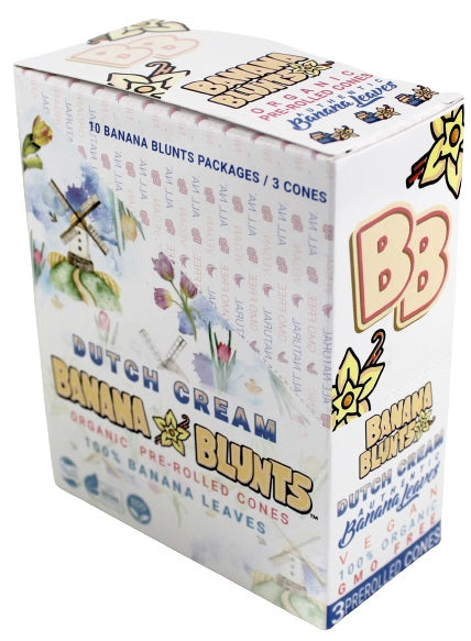 Banana Blunts Organic Pre-Rolled Cones – Dutch Cream. 10 Packs in a Box Display with 3 Cones Per Pack.