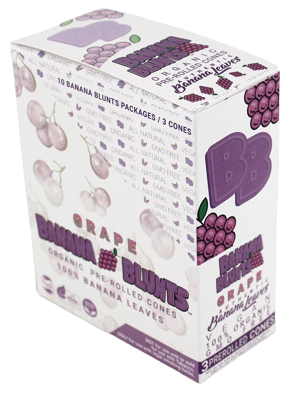 Banana Blunts Organic Pre-Rolled Cones – Grape. 10 Packs in a Box Display with 3 Cones Per Pack.