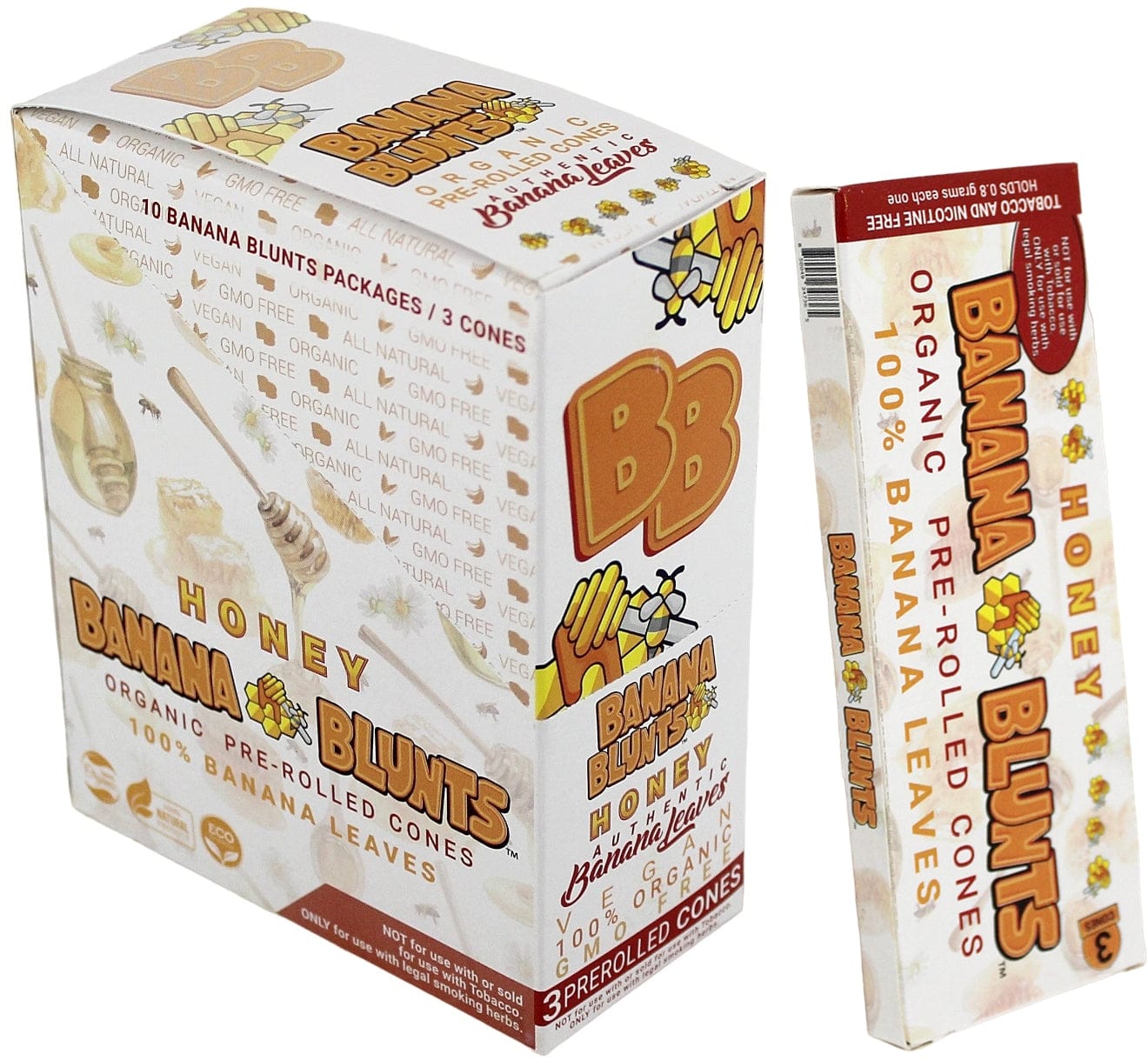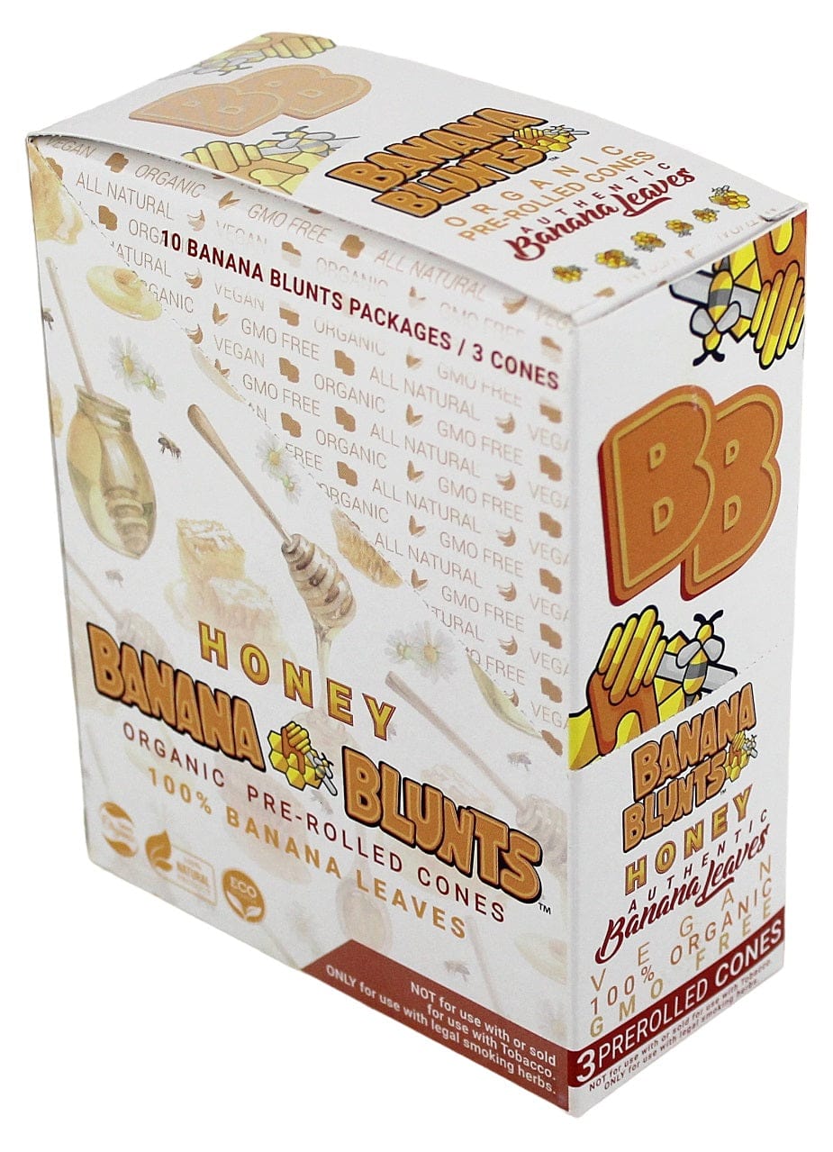 Banana Blunts Organic Pre-Rolled Cones – Honey. 10 Packs in a Box Display with 3 Cones Per Pack.