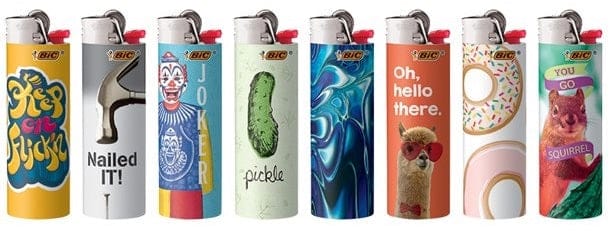 Bic Lighters – Special Edition Favorites Series Designs. 50 Lighters on a display.