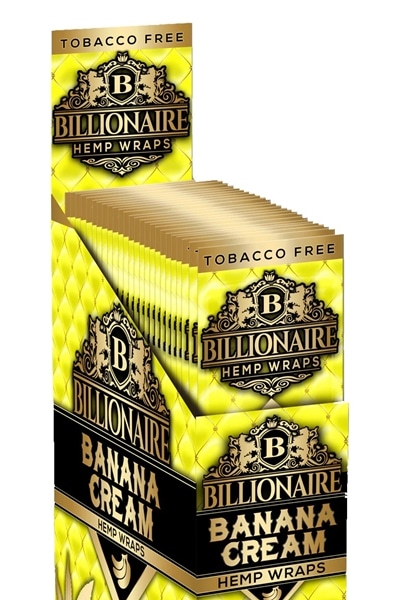 Billionaire Hemp Wraps – Banana Cream. 25 Packs in a Box Display with 2 Wraps Per Pack.