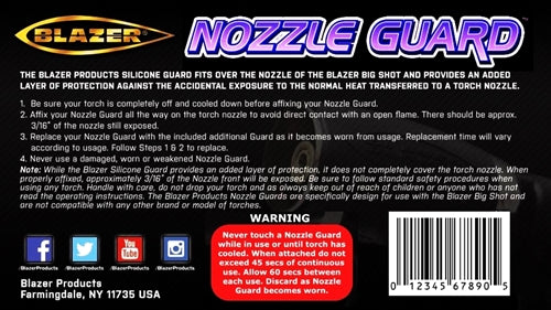 - The Blazer Silicone Nozzle Guards fit directly over the nozzle of the Blazer Big Shot as an added layer of protection against accidental exposure to the normal heat transferred to a torch nozzle.