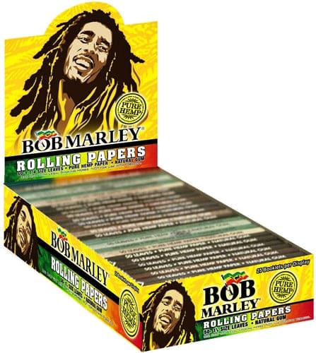 Bob Marley Pure Hemp Rolling Papers – 1 1/4. 50 Leaves Per Booklet with 25 Booklets In A Box Display.