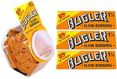Bugler Rolling Paper .89 Pre-Price Fish Bowl – Slow Burning. 75 Packs In Display With 50 Papers Per Pack.
