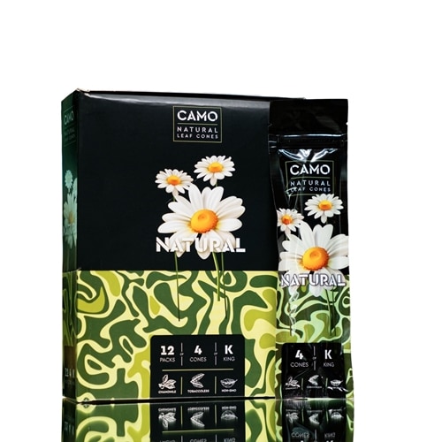 Camo Natural King Size Leaf Cones. 12 Packs with 4 Cones Per Pack.
