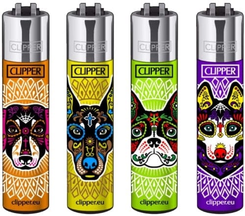 Clipper Lighter – Muerta Dogs. 48 Lighters On A Tray Display.