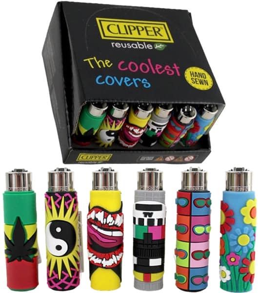 Eco-friendly refillable Clipper lighters with a Hand Sewn rubber casing around them and feature a hidden poker.