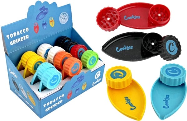 Cookies 2in1 40mm Grinder with Tray. 12 Grinder with Tray In A Box Display.
