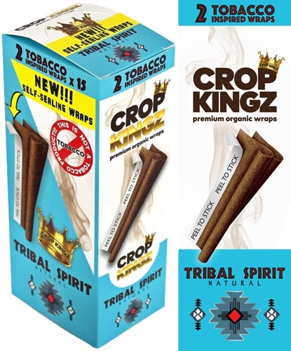 Crop Kingz Tobacco Inspired Self-Sealing Organic Wraps – Tribal Spirit. 15 Packs In A Box Display With 2 Wraps Per Pack.