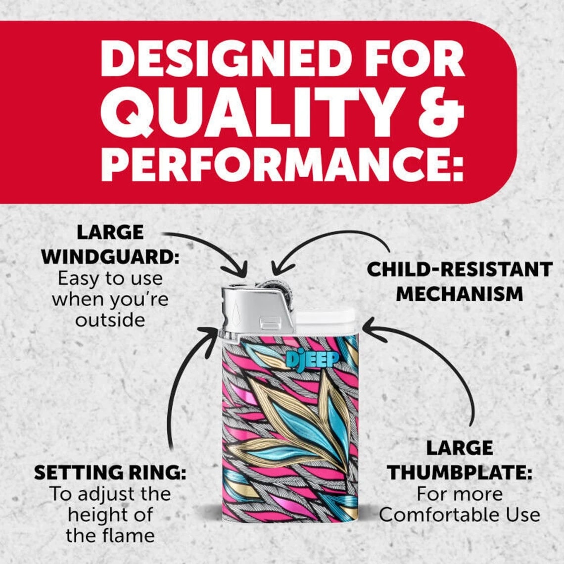 Djeep Lighters – Limited Edition Leaf. 24 Lighters in a Tray.