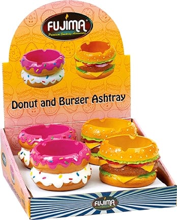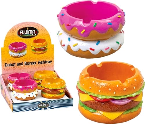 Donut and Hamburger Polystone Ashtray. 4 Ashtrays In A Box Display.