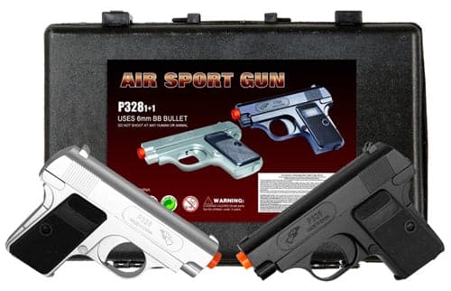 Double Eagle P328SB Dual Spring Pistol Set Black/Silver Airsoft Gun. 1ct.