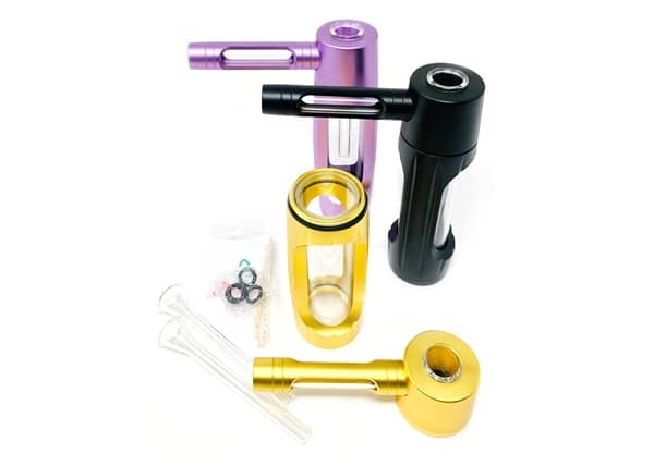 - interchangeable glass bowl: two long stem, one shorter stem for pipe