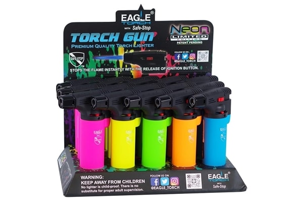 Eagle Torch 4″ Single Side Torch Gun Lighter Neon. 15 Torches In A Box Display.