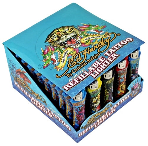 Ed Hardy Curve Refillable Lighters EH-LT-162. 50 Lighters In A Box Display.