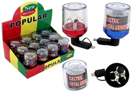 Electric Automatic Metal Mobile Grinder. Fits Micro USB and Lightning Cable Connectors. 12 Grinders In A Box Display.